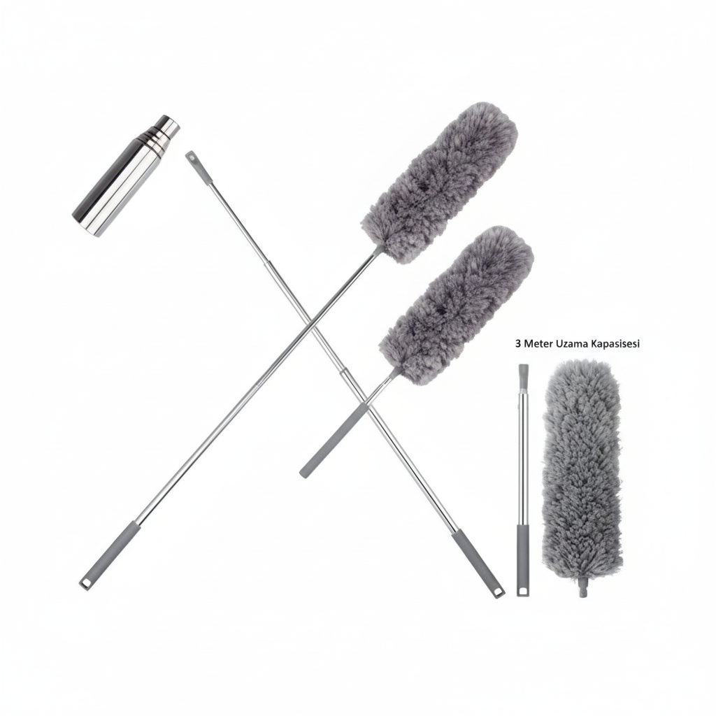 Teleskopik Toz Alma Fırçası Seti - Uzatılabilir Temizlik Fırçası